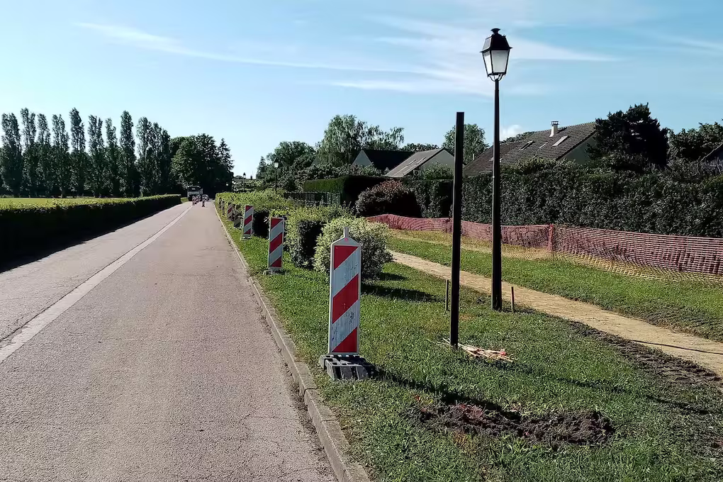 Depuis la fin mai, de la rue de l’Eglise jusqu’à l’entrée du village, le cheminement piéton est élargi à 2,50 m minimum, afin de faciliter la circulation partagée (piéton, vélos, personnes à mobilité réduite). Un plateau surélevé marquera en outre l’entrée du village, pour ralentir la vitesse des véhicules motorisés et sécuriser la traversée des modes actifs. D’ici la fin de l’année, les aménagements se poursuivront le long de la route départementale 126 jusqu’à Montereau-sur-le-Jard.