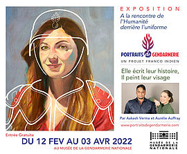 Le Musée accueille une toute nouvelle exposition « Portraits de Gendarmerie », du 12 février au 3 avril. Mots et pinceaux s’y mêlent pour parler des hommes et des femmes gendarmes. L’exposition est composée de 16 portraits, qui racontent la vie, le quotidien et les émotions de ceux qui travaillent au service de la Gendarmerie. C’est l’oeuvre d’une gendarme, Aurélie Auffray et d’une artiste, Aakash Verma.