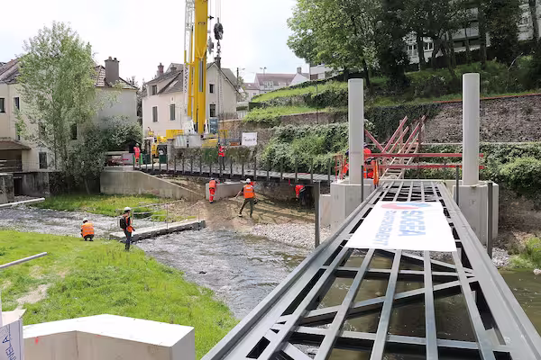 - La première passerelle (P5) a été posée en janvier 2023 à Saint-Germain-Laxis ;