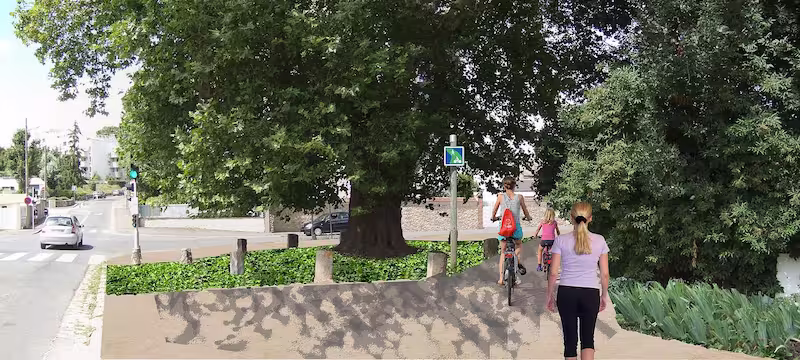 Les revêtements naturels (similaires aux revêtements des allées du parc du château) ont été privilégiés pour favoriser l’intégration de cette liaison douce dans son environnement.
