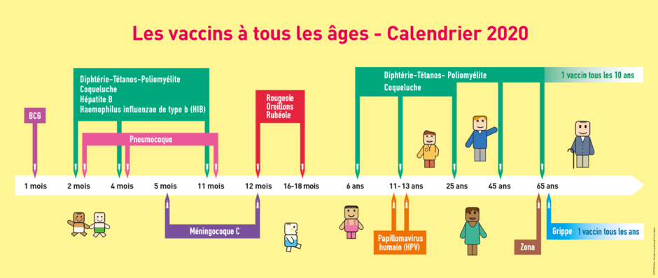 Retrouvez ci-dessous une infographie indiquant le calendrier simplifié des vaccins.