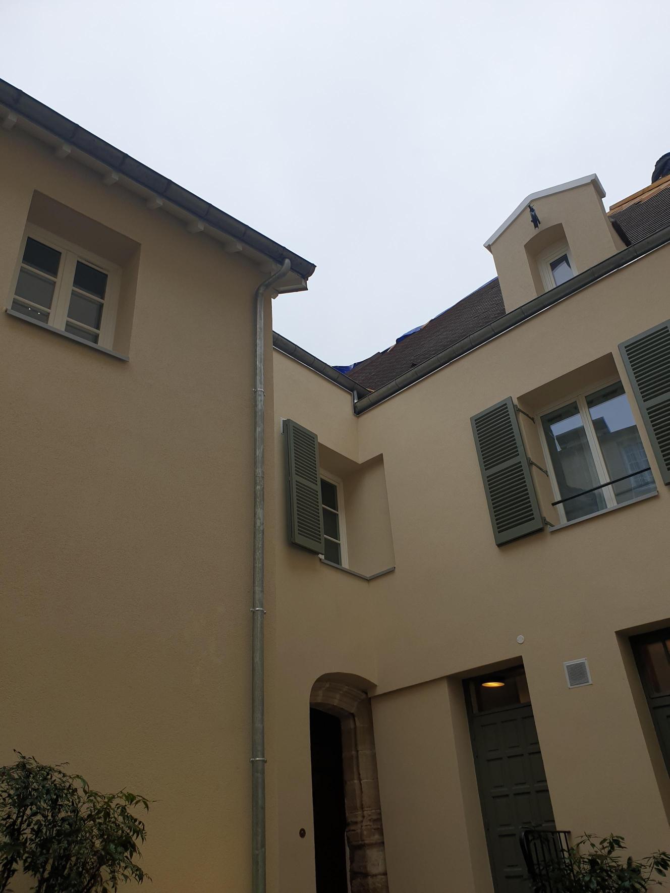 - la reprise des réseaux d’eaux pluviales, avec remplacement des gouttières et descentes défectueuses.