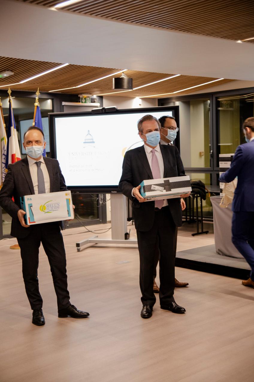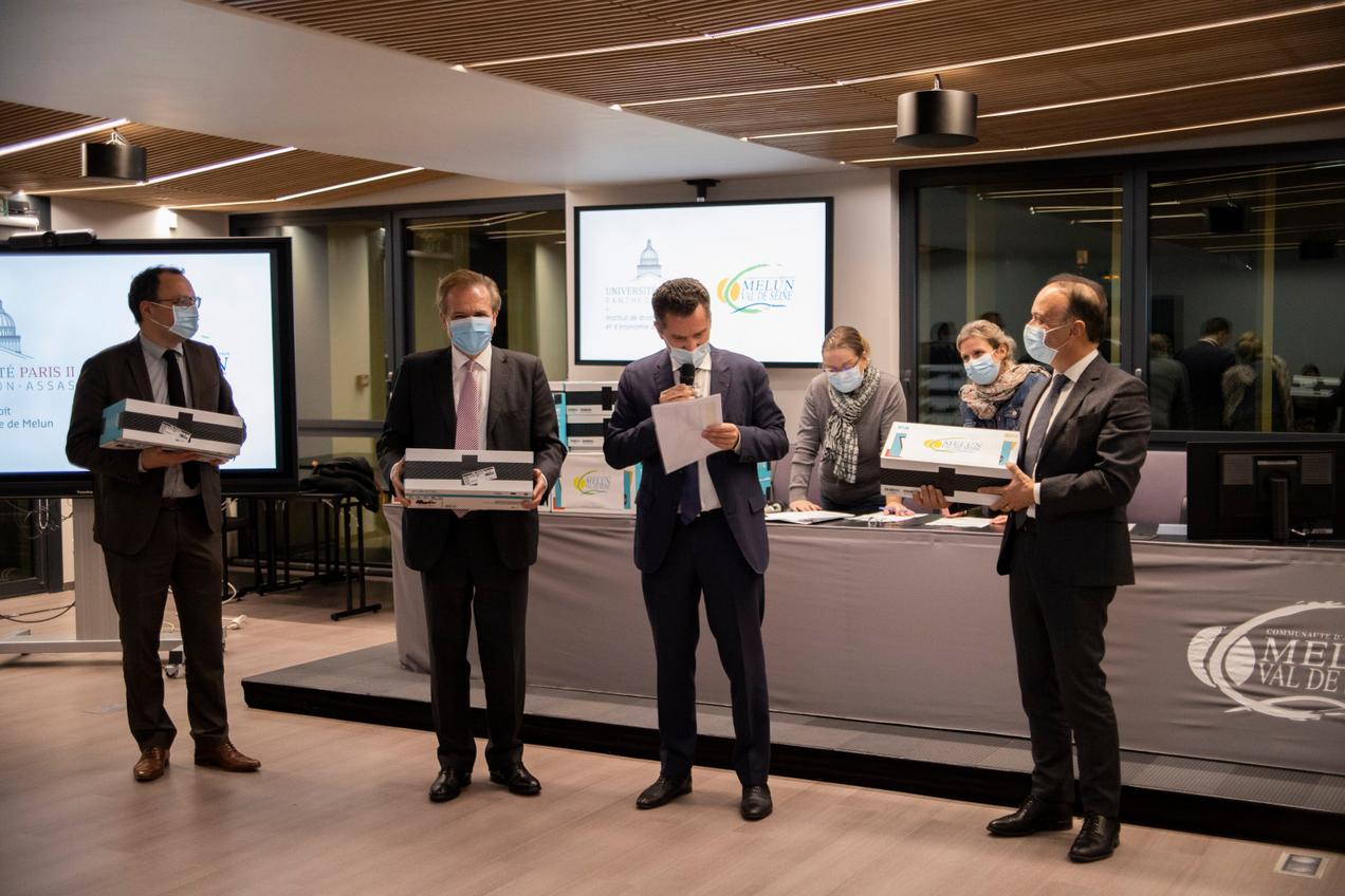 Des ordinateurs portables ont été remis à une trentaine d’étudiants d’Assas-Melun, antenne melunaise de l’Université Paris 2. Offerts par la Communauté d’Agglomération à l’Institut pour l’Egalité des Chances de l’Université Panthéon Assas Melun, ces ordinateurs vont permettre aux étudiants les plus précaires de suivre les cours à distance, en visio-conférence jusqu’à février minimum.