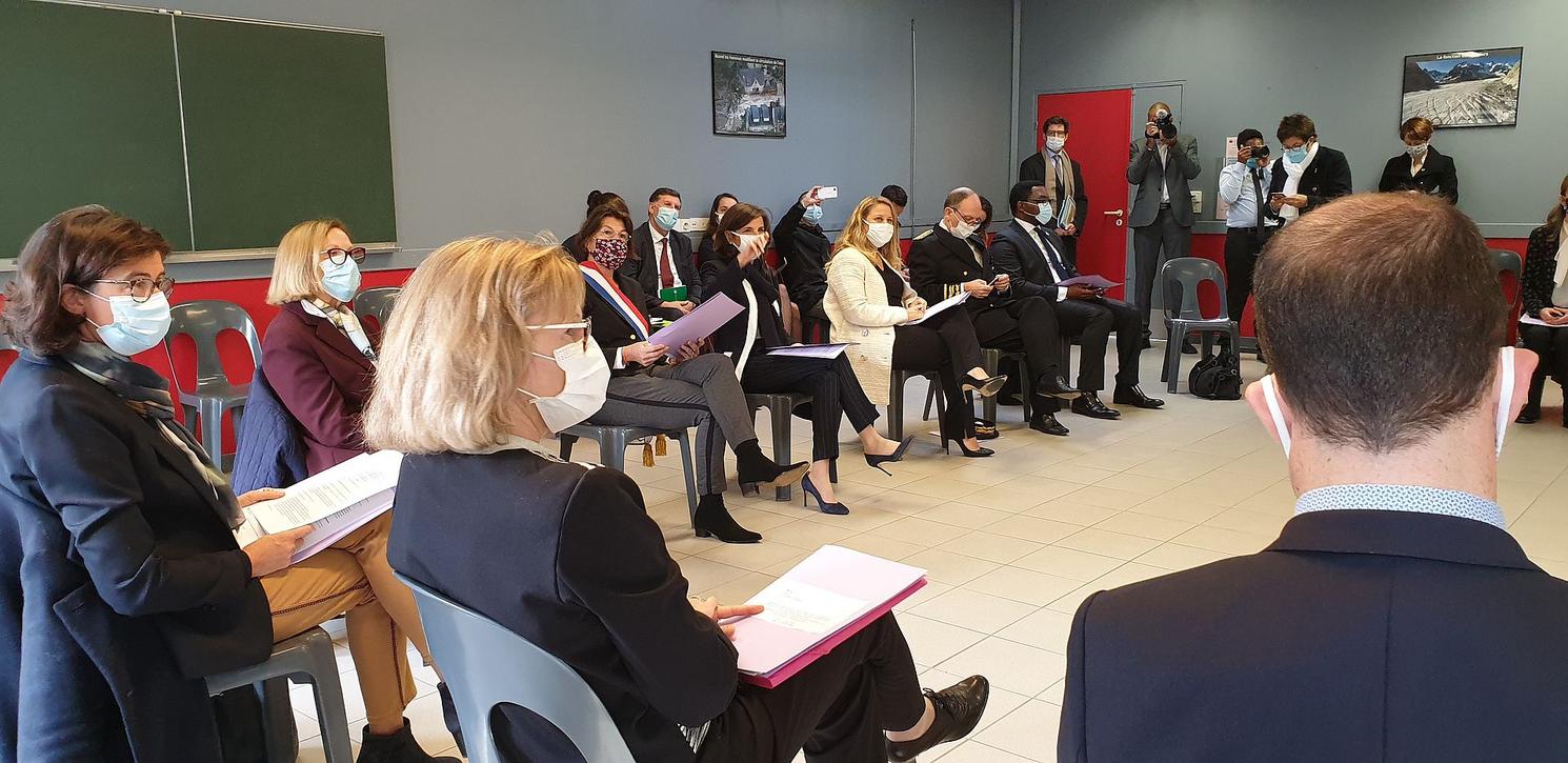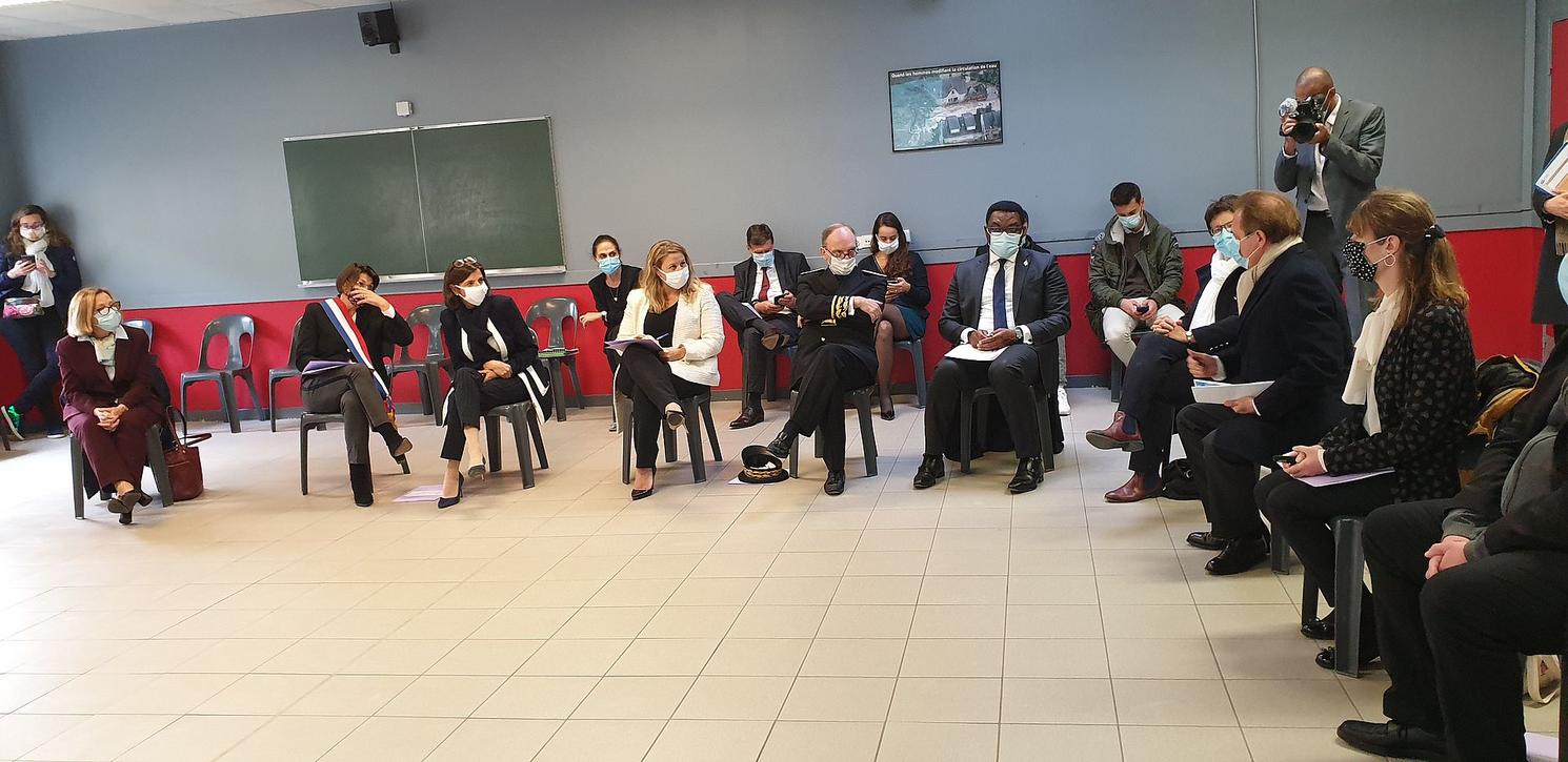 La Ministre déléguée auprès de la ministre de la Cohésion des territoires et des Relations avec les collectivités, chargée de la Ville ainsi que la Secrétaire d'État auprès du ministre de l'Éducation Nationale, de la Jeunesse et des Sports, chargée de l'Éducation prioritaire se sont déplacées le lundi 12 octobre au collège Les Capucins de Melun, pour une présentation de la Cité Éducative.