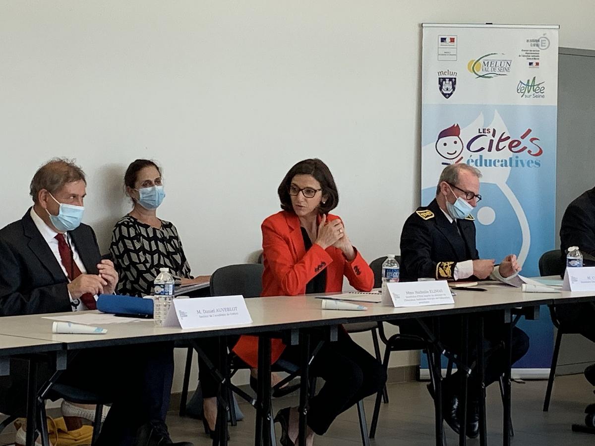 Le lundi 5 juillet 2021, la secrétaire d'Etat chargée de l’Education prioritaire, Nathalie Elimas, s'est rendue au collège Elsa Triolet au Mée-sur-Seine pour faire un bilan de la Cité Educative Melun Val de Seine et envisager les perspectives pour les années à venir.
