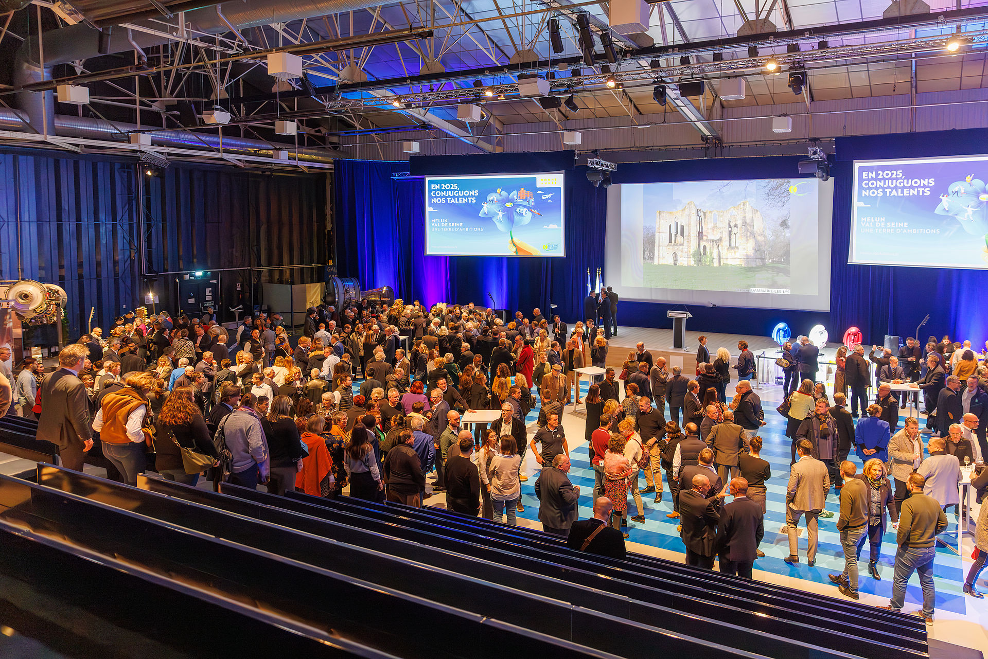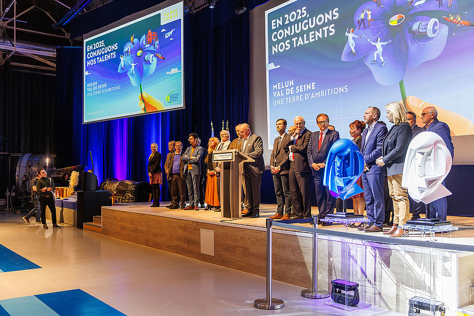 C’est au sein du Musée aéronautique et spatial Safran, lieu emblématique du territoire retraçant l’histoire extraordinaire du groupe et de l’aviation, et situé sur la commune de Réau, au coeur du pôle d’activités Paris-Villaroche, que Franck Vernin, Président de l’Agglomération, a adressé ses voeux aux personnalités du territoire, au nom du Conseil communautaire.
