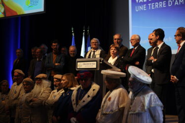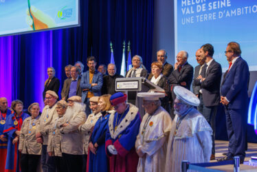 Après son discours, Franck Vernin a souhaité mettre à l’honneur Michel Lévy, artiste renommé du territoire, plusieurs fois distingué. Ce dernier est venu présenter Marianne, une œuvre originale qui revisite avec audace et sensibilité la figure emblématique de la République française. Pour conclure la cérémonie, Geneviève Varoqui, Présidente de l’Ambassade Régionale des Confréries de Produits de Terroir – Goût, Gastronomie d’Île-de-France, a remis au Président de l’Agglomération la médaille de l’Ambassade d’Île-de-France des Confréries de Produits de Terroir, en reconnaissance du soutien apporté par l’Agglomération à la promotion des produits du terroir.