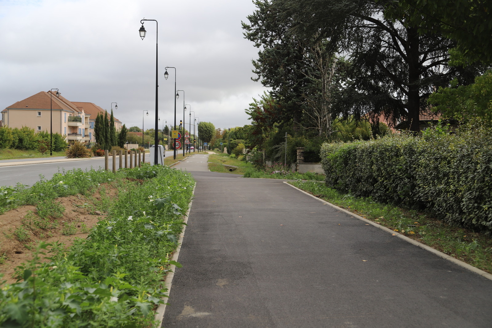 - Le long du McDonald’s, une voie verte en enrobé a été créée sur l’accotement.