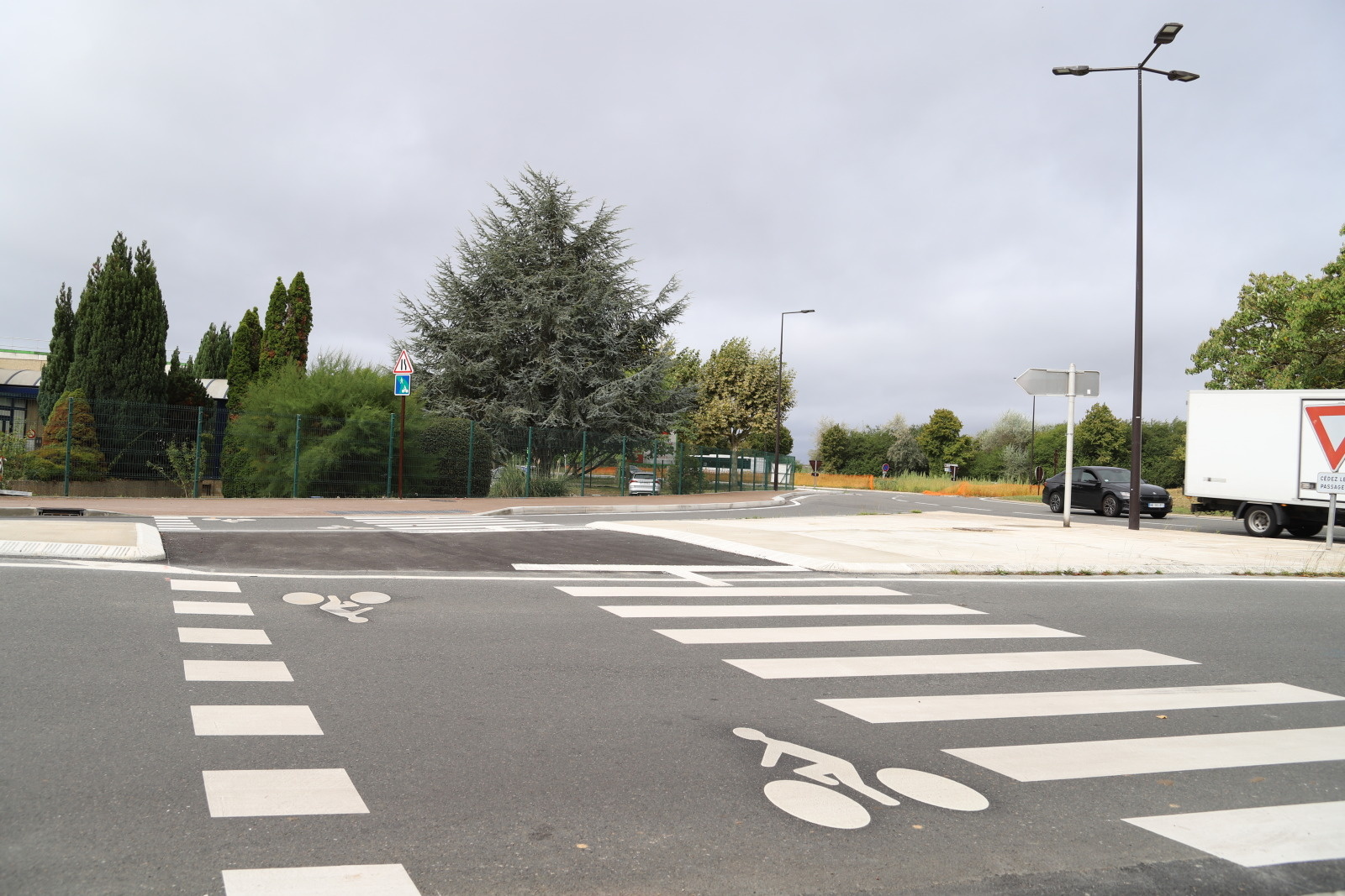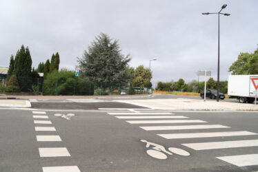 - Entre le Carrefour Market et le McDonald’s, la traversée piétons / cycles a été aménagée avec une réduction de la largeur de la chaussée ;