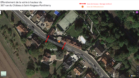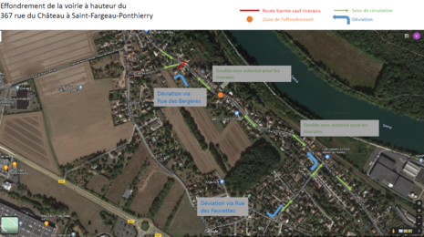 Afin de prévenir tout incident, la rue du Château est fermée à toute circulation, sauf riverains. Nous vous remercions donc de ne pas emprunter cette zone de chantier balisée et de suivre la déviation mise en place.