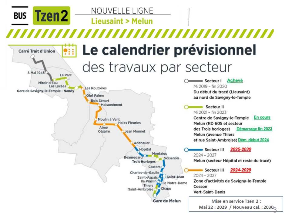 Lancé en 2007 par le Conseil départemental de Seine-et-Marne, maître d’ouvrage, le Tzen 2 est déjà une réalité sur les communes de Lieusaint et Savigny-le-Temple.